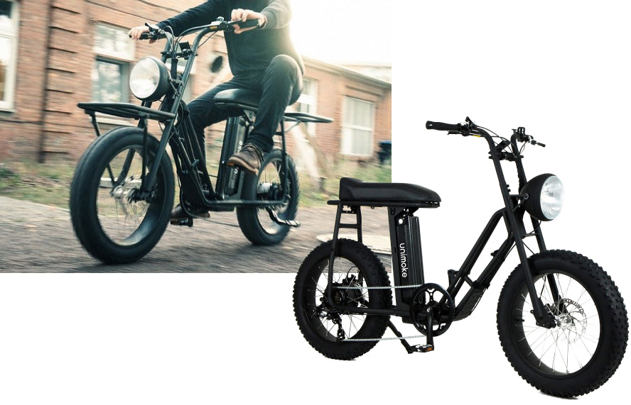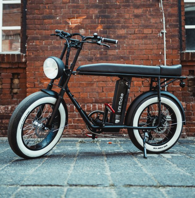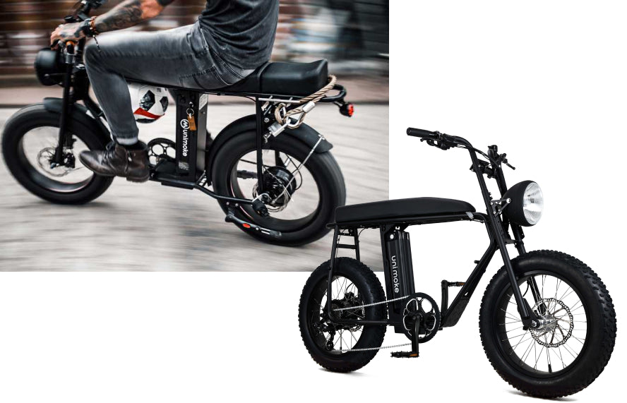Urban DrivestyleのファーストモデルであるUnimoke MKは、ロングシートが特徴的なクラシックバイク型電動アシスト自転車です。一見バイクにしか見えないそのクールなデザインは、ブランドのプロトタイプとして絶大な人気を誇ります。